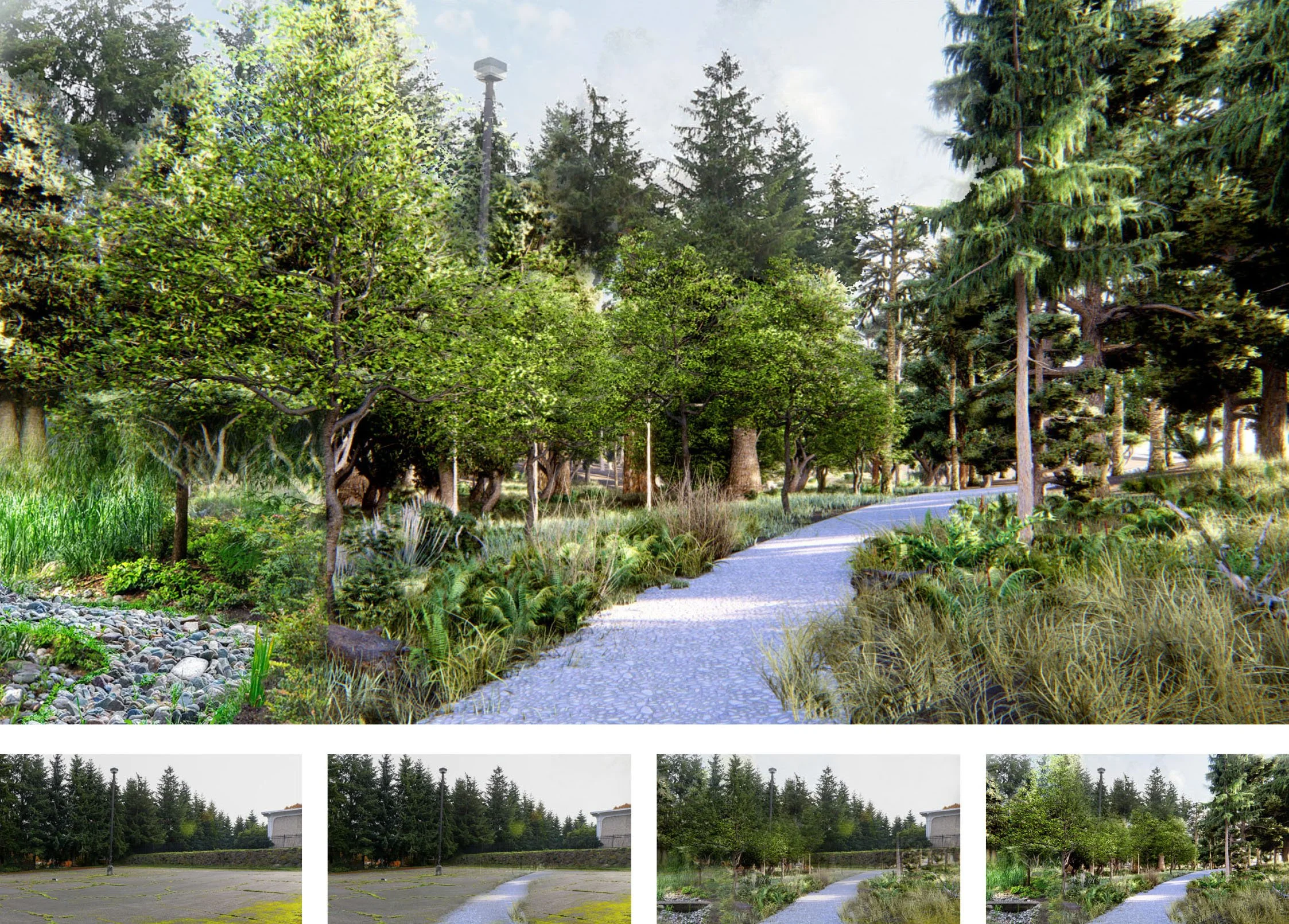With redevelopment for the former Fort Lawton site delayed in part due to dramatic stormwater infrastructure costs, the Friends of Discovery Park saw an opportunity to establish an ambitious vision that embraces landscape systems to reforest and strengthen habitat connections within this underutilized site.