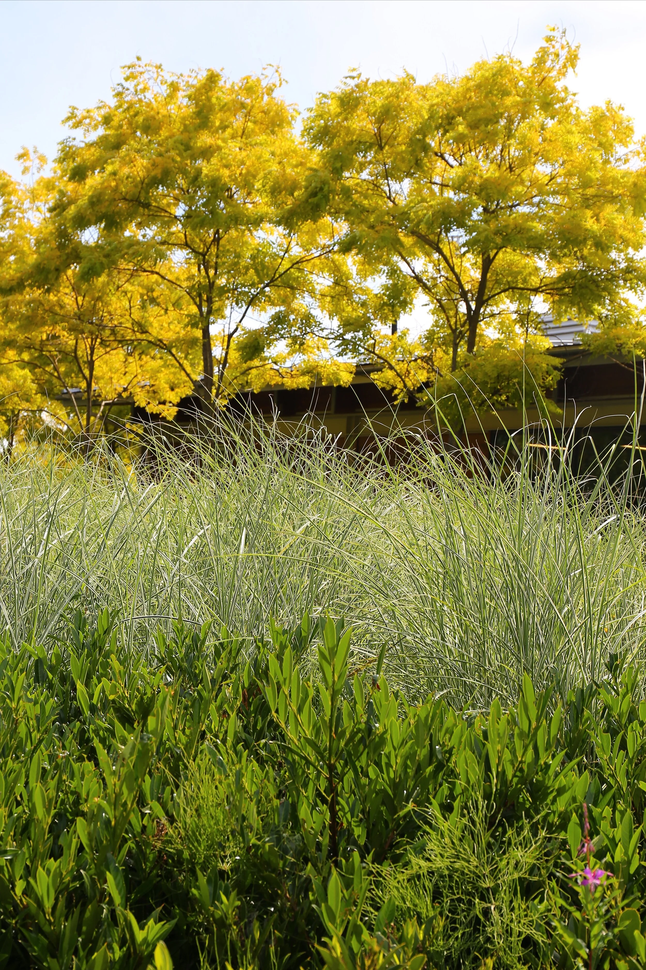 The Marina Plaza is the largest public space on the site. Honey locust groves with lush underplantings reference the native shoreline, bookending a combined retail and office building while providing a buffer from the adjacent street. Bands of paving extend from the architectural module, connecting indoor and outdoor spaces. An arc traverses these bands and collects rainwater in an illuminated trench drain. The public art water feature activates a gathering area at the building’s primary entrance.