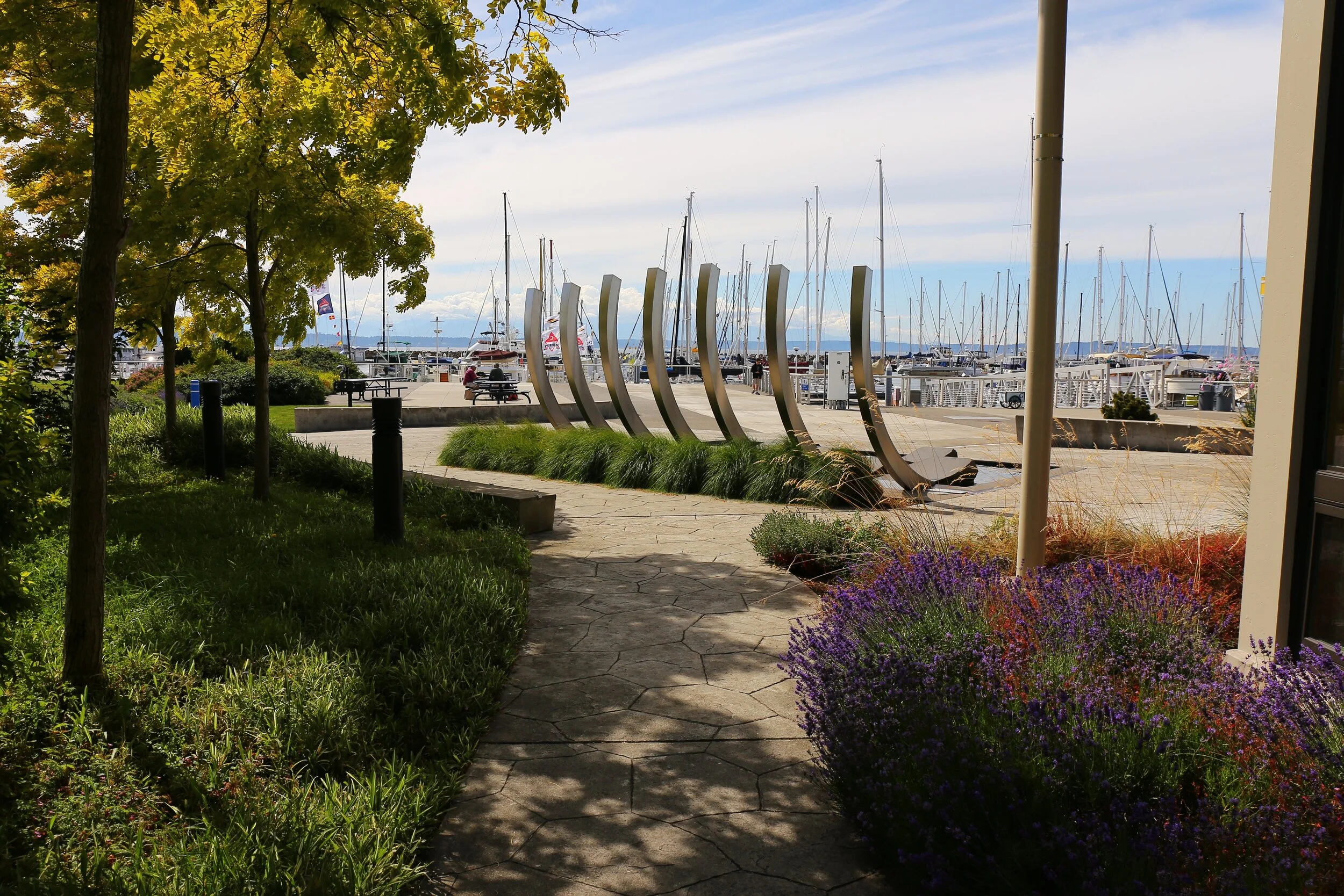 Shilshole Bay Marina is the largest of Seattle’s marinas, with 14 ares of waterfront spanning a mile of Puget Sound’s edge. The site underwent a $70 million renewal that features a series of new public plazas linked by a continuous esplanade and major landscape improvements. Scott developed the plaza designs in close collaboration with the architecture team, civil engineer, and public artist.