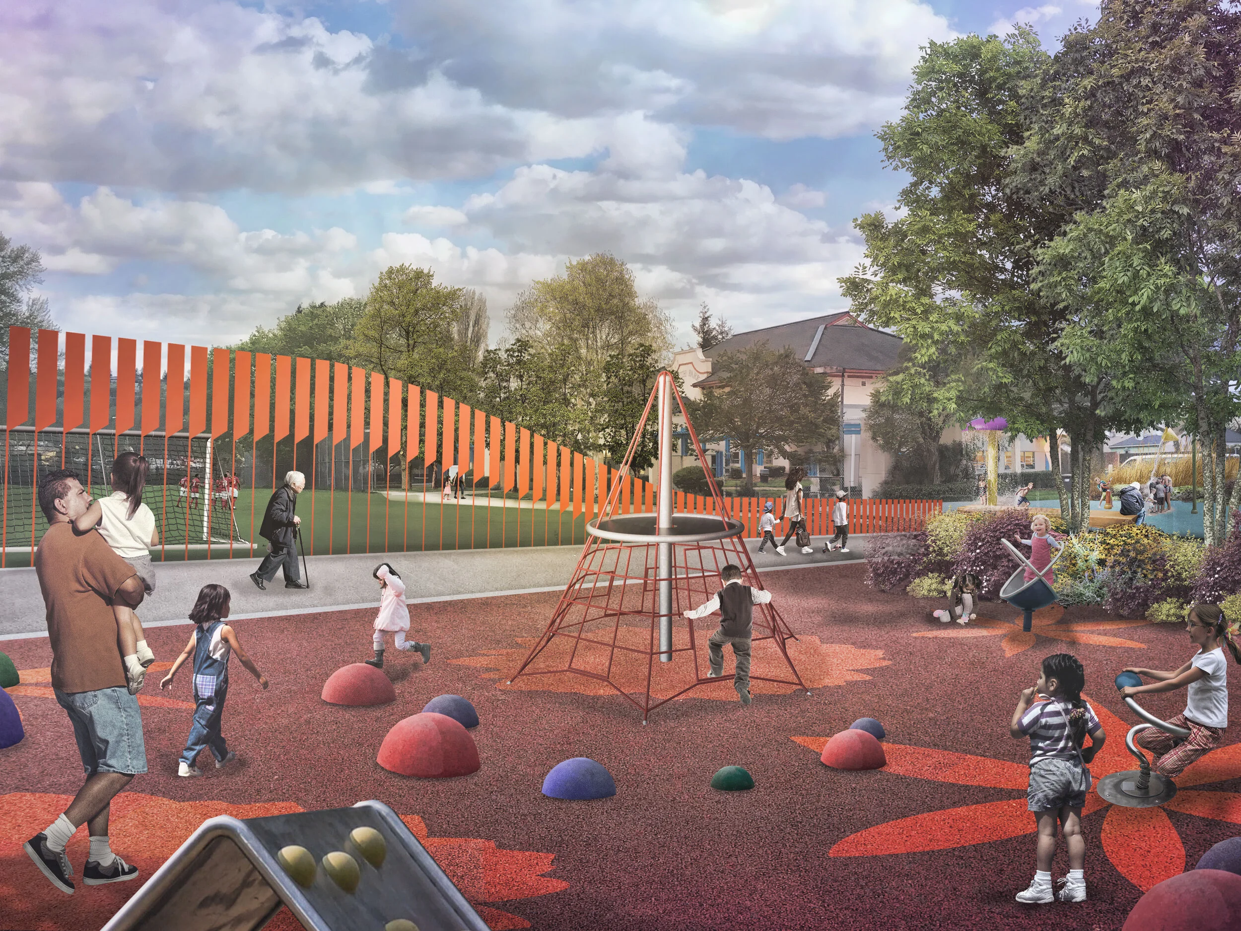 This site, in Seattle’s South Park neighborhood, is the gathering hub for a tight-knit, diverse community, which has long borne the brunt of underinvestment and discrimination. Brice led a collaborative team that worked with Seattle Parks and Recreation to renovate the entire site in order to address environmental justice concerns related to air and noise pollution coming from SR-99. Working with the community, the existing spraypark and playground that cater to young children will be moved away from the highway. New lighting, drainage systems, and play field surfacing will offer kids and teens in the neighborhood access to year-round recreational opportunities on the fields and a new windrow of trees will capture pollutants coming from the highway to better protect young lungs. To address a community need and as part of the site’s crime prevention through environmental design (CPTED) strategy, an off-leash area for dogs will be installed along the western edge of the site.